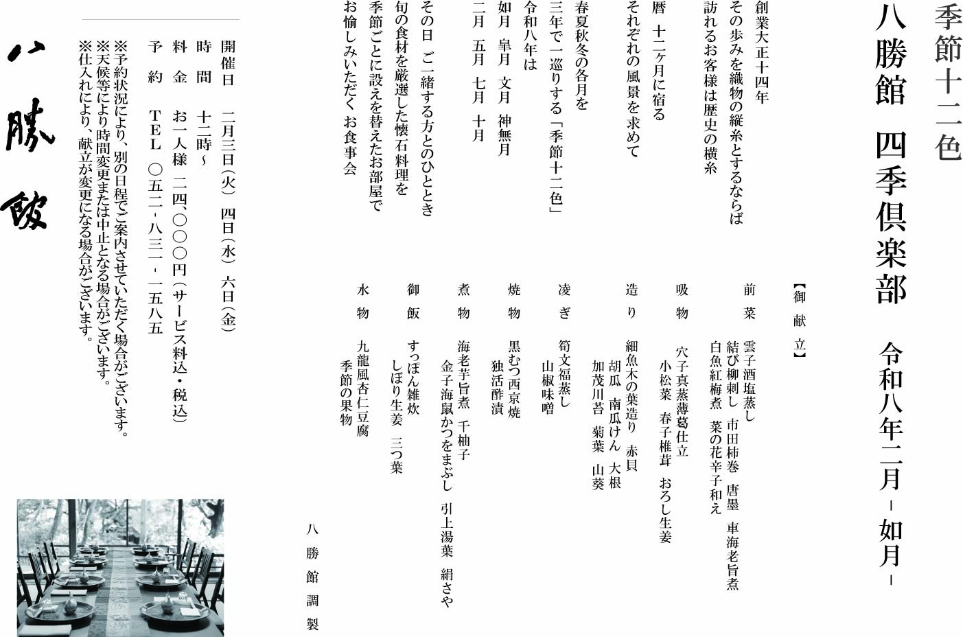 ◆  季節12色 八勝館 四季倶楽部 如月  ◆